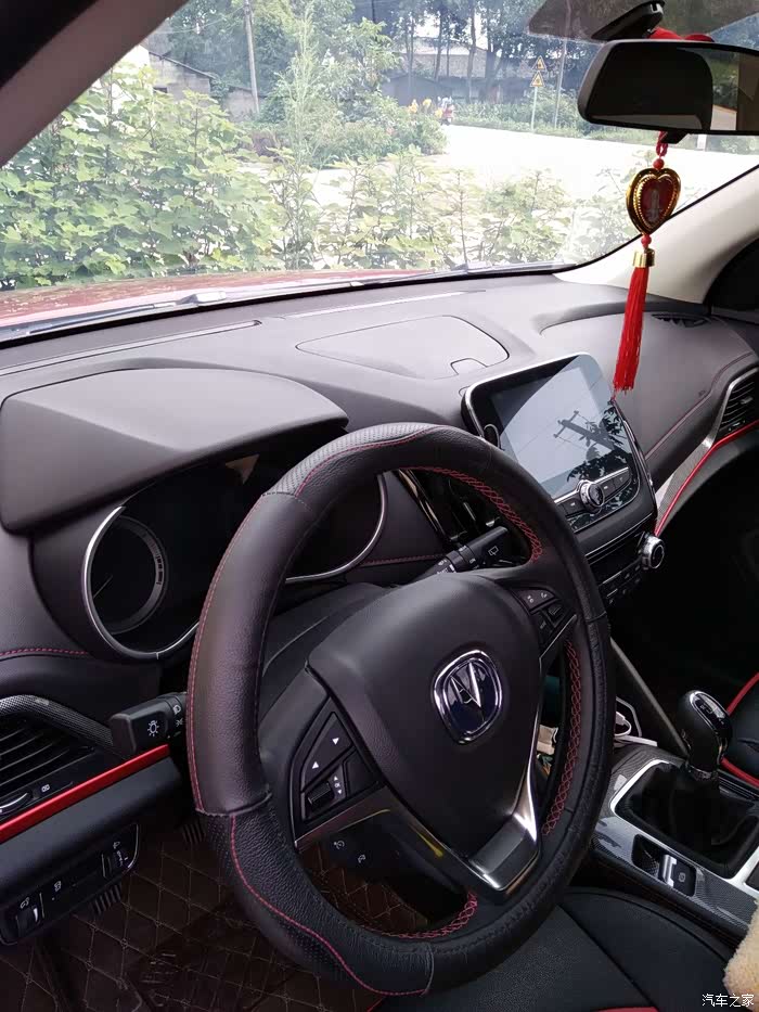 长安cs55主打炫动红色,在停在场里也是靓丽夺目。