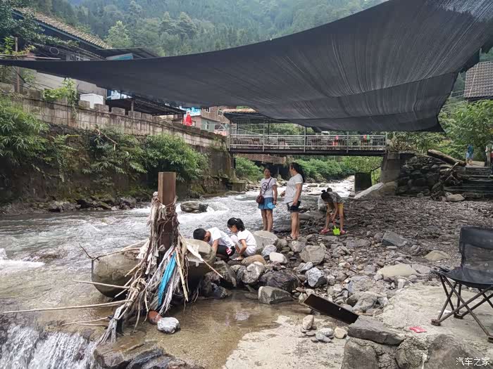 农家想得很周到,在沟滩拉起了遮阳网,在沟下玩水就不怕晒到太阳。
