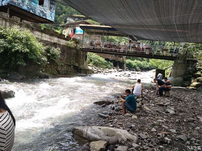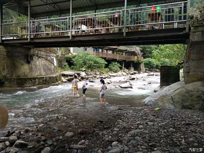 我们选了一家离水最近的农家吃饭,10个人,人均30元,而且小孩免费,菜都是固定配好的菜,分量稍微显得不足。后去的朋友可以自己在城里买点凉菜。吃完饭大人可以玩牌,在山沟的桥上喝茶,小娃儿玩水,玩沙子。如果需要住的朋友就提前订房间,有的农家住店会送餐的。