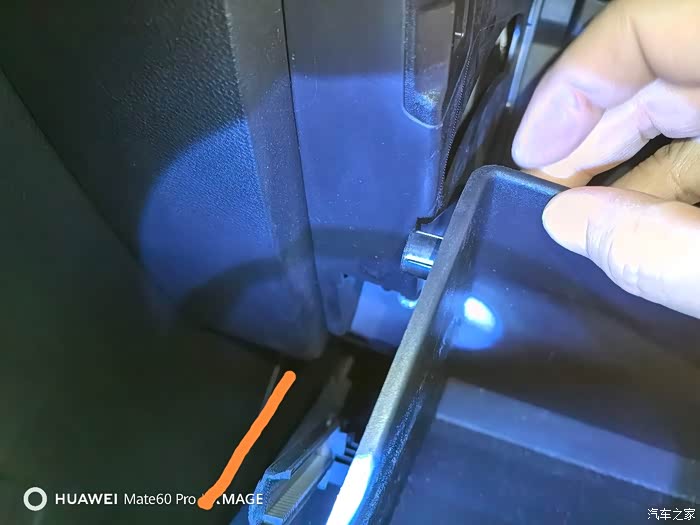 如一般车型操作打开手套箱,用暗力 分别压 两边滑动卡口,使其脱离。注意!注意!注意!手套箱开口只松开图一大小,用脚顶着,然后分离松脱阻尼器拉杆和手套箱链接的卡扣,使拉杆还留在阻尼器上面。不要使拉杆脱离成图三,不然就会和我一样噩梦的来临。