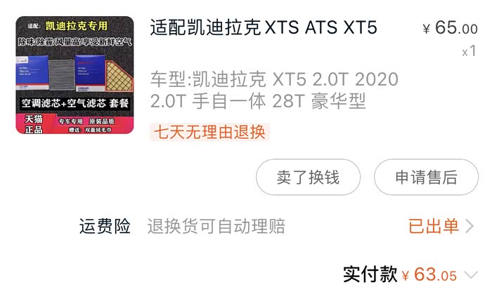 自己在网上买的空气滤和空调滤,买的时候还担心质量差,买回来以后比较了一下,几乎与原厂是一样的。