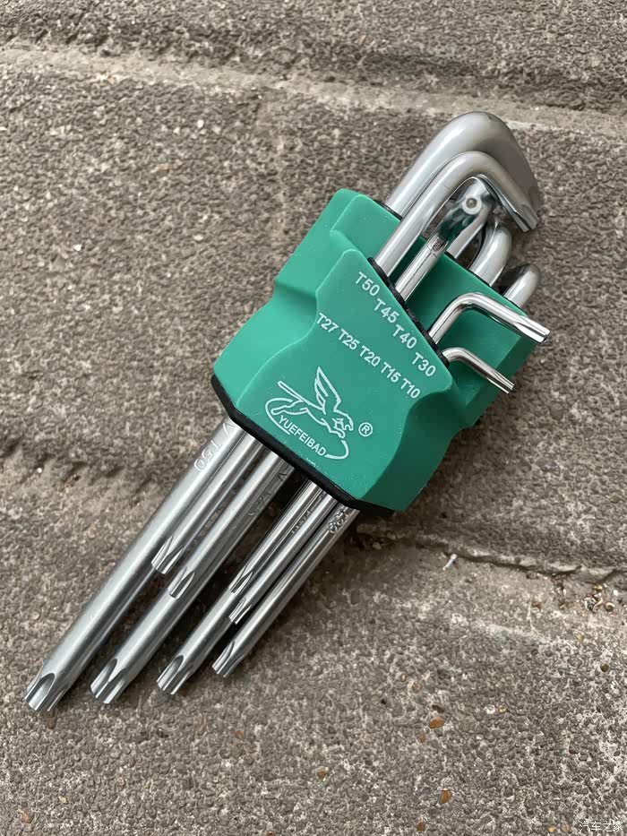 特意花了20元去五金店买的工具,用T20型号的。这个工具还可以在上回去松紧绳的时候用得上,因为用手指拉着太痛苦了。折腾了好久才上回去。后来想想其实这个松紧绳不上也没有关系。