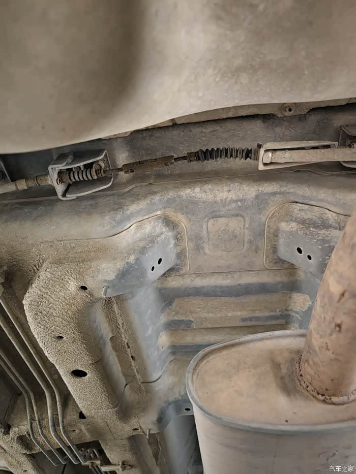 松掉手刹之后看到原来是电机一直在松手刹拉线,手刹拉线分向两个后轮的地方已经可以荡秋千了,顺着拉线往后轮方向走,看到手刹不太归位,用手搬一下才能归位,应该手刹拉线时间长了不顺滑了,自己用手拉着拉线使劲来回拉,之后能顺利归位