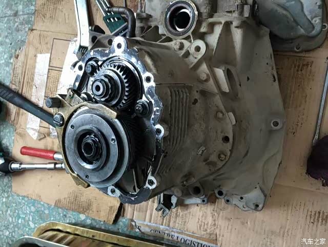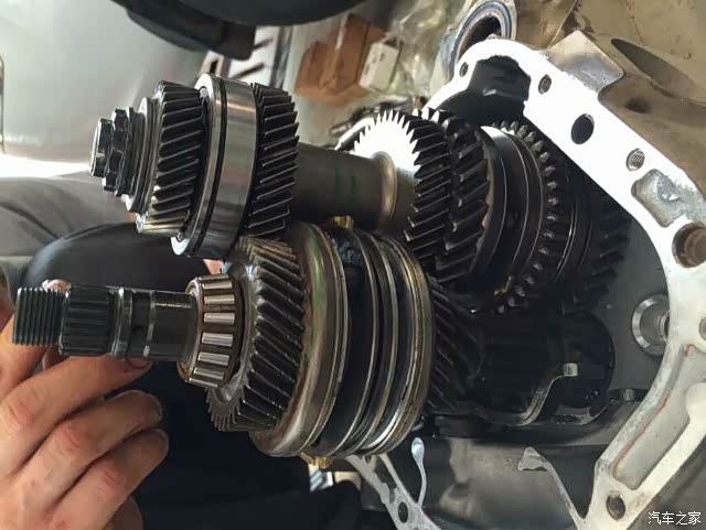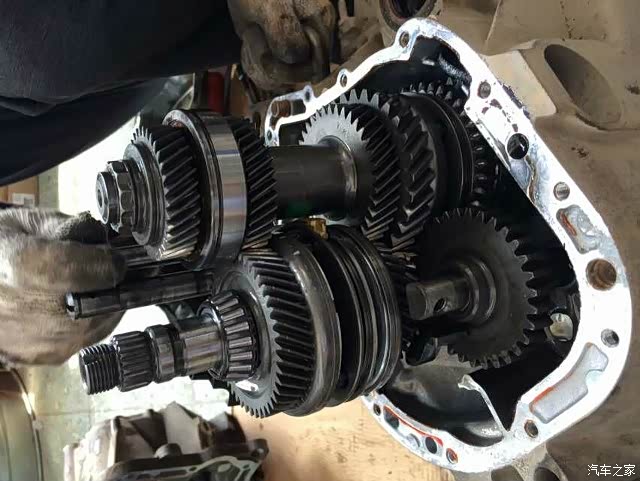 带拨叉的就是一轴(输入轴);另一个把子就是输出轴。二把结构的变速箱解体。