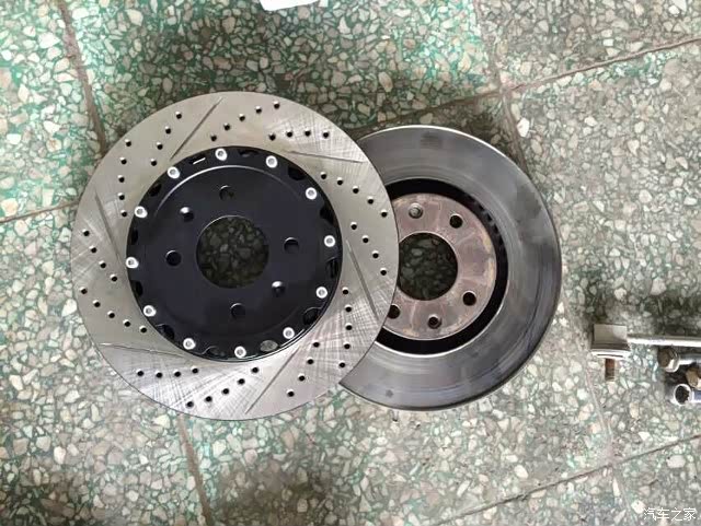 304刹车盘。原厂规格前283后247,2.0的刹车套件原本想上330的盘,但后刹车套件没有理想的方案可行,怕栽头也就降了个等级。其实法系的刹车套件倒是可以移植的;原厂就有套件;应该是308CC版本的套件。前304后268。也有308GTI套件:前330后298。想着是原厂那个重啊!改造最理想的当然是尽量减少簧下质量间接提升动力,原厂套件不便宜又笨重,也就放弃了。顶多哪天高兴了淘一套268的后原厂套件也算跟进了脚步了。刹车总泵依旧用的原厂;改刹车只要不是前后大几个缸的活塞原厂总泵都够用。没必要多进行跟进升级。
