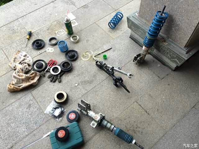 事实说明:我还是高估了我的折腾能力!事先就有408上B14无奈退场的案例。单纯的这套避震我在修理厂拆装就一次,是优化了巡着渐进弹簧的装配方式做的改进,一直以为问题仅仅就是直卷弹簧磅数高塔顶受不了的原因。但也许不全是这个原因。修理厂拆装后,和师傅是很熟悉了,但也不好意思老霸占着工位瞎搞。索性自己淘了工具就折腾起来。自己平时12点以后会闲,然后拆装次数就算10次就好吧。应该说一步步的还是出了效果的。从打方向激励桄榔响,到水泥路面抖搂响。可以说进步的不只是一点点。但是也只能维持在这个阶段。最理想的就是一装配完毕以后5公里左右的路程是清净的,但是过了以后抖搂响就又出现了。避震阻尼没问题,前桶包个毛巾,用体重(不到120斤)压下去不动的!还得使劲才勉强压下去一点点;它是压缩阻尼和回弹阻尼都霸气,霸气到比我后面装配的全新B8桶的阻尼还要好。行程也比B8桶长。由于408阶段性的还是需要兼顾用车,频繁的抖搂响也不是办法。无奈放弃。