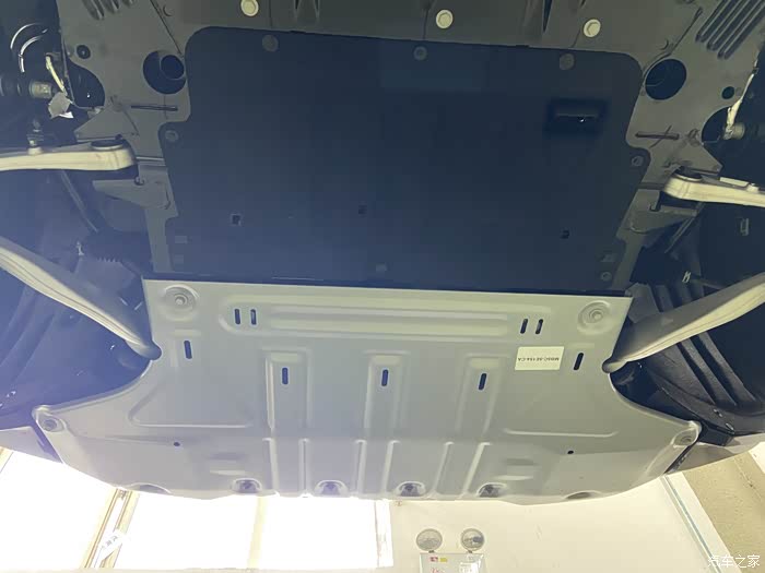 最后把车子升起来看看底盘,底盘也是被厂家包裹的严严实实,下面护板采用了钢板材质,让我越野的时候再也不用担心底盘的剐蹭!