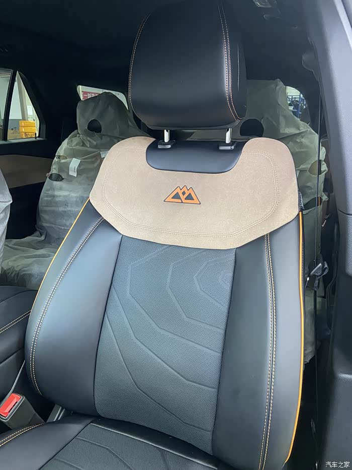 座椅也是采用颗粒面真皮座椅和麂皮,麂皮中间也有昆仑版本专属标识,座椅压花据说是以昆仑山脉为主题压制而成。