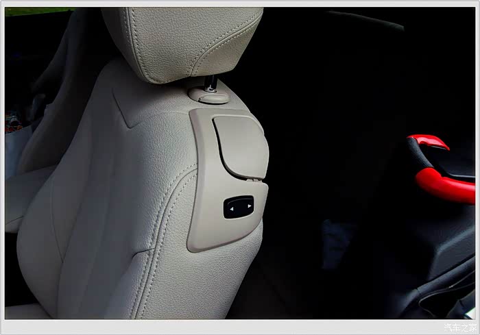 前排座椅放倒拉杆,下面的电动按键比较鸡肋,按起来移动的非常慢