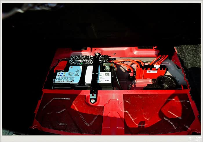 宝马把电瓶放后备箱下,平衡配重(宝马用防爆胎,后备箱没有备胎)