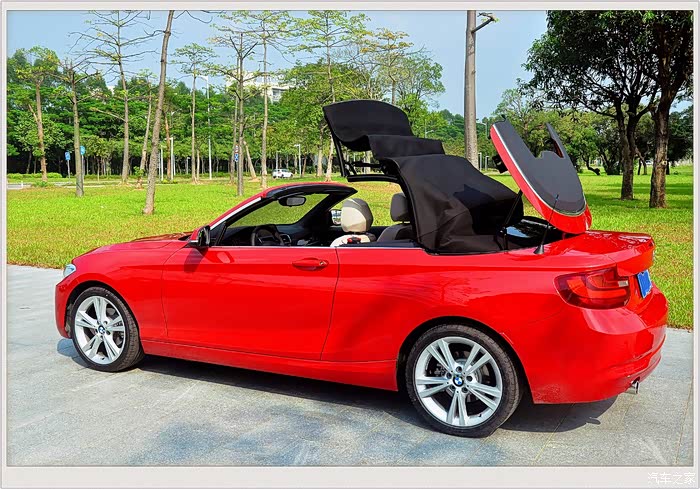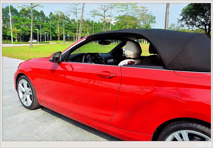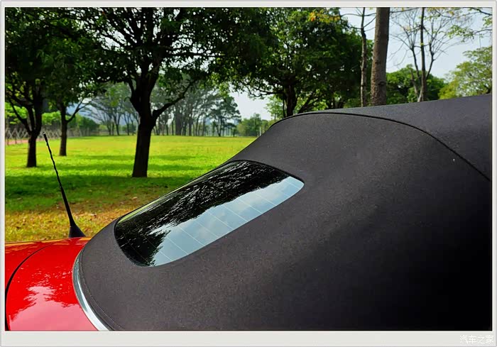 还有要吐槽的是这个后风挡玻璃,因为是镶在篷子上,因为重力原因,耷拉着会把篷子拉得有点变形,侧看很难看,没有顺滑的流线形,我观察过其他2系敞篷,都这样,不知道其他牌子的敞篷车也这样吗?