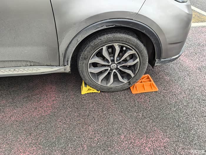 操作过程没有手刹,车子防滑涉及安全,稳稳地把右前轮卡住。