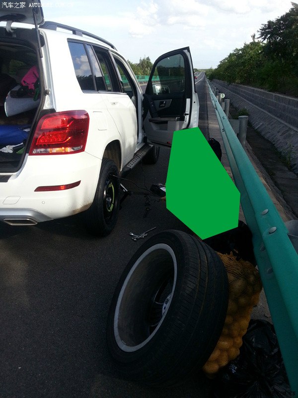 上上周去了趟天路,回来是从野狐岭那边出的,回京走的高速应该是张石吧?我也记不清了,反正就是没开多会儿,在最里线开的好好的,车速大概100吧,没开太快,怕拍照。这时远远看到车道上有东西,一看像是某大车爆胎后的残骸之类的,我一看距离要躲也不是不行,就是需要打轮动作大点,余光看到后面旁边车道有车,心想不并线了,还是骑过去吧,我觉得前后轮应该都骑过去了。然后就听见咯噔咯噔。。。方向盘倒没任何感觉,所以初步判断是后轮挂了,就慢慢溜着靠边停了,下车一看,右后轮彻底瘪了,一个大口子,补胎是不用想了,这胎算是废了。哎。。。别的别说了,换备胎吧。这里要吐槽句,奔驰,你敢再抠门点吗?glk备胎什么破玩意啊!非全尺寸的我就不说什么了,还是要现场打气的。。。你有送我那个气泵的钱你给我换成不用打气的不成吗?花纹那叫一个浅,上面还用大字写着限速80公里。**,我离京小200公里呢,这是要我爬回家的节奏啊。抱怨归抱怨,换胎吧。。。这是就看见又一辆车慢悠悠靠边,停在我们前面了,下车也看轮子,不用说,也爆了。我心情刚舒畅一点,就听后面棒的一声,一辆10几个轮子的大货看样子也是爆胎了,慢慢减速向**近,也爆胎了,哈哈。嗯?向**近?!**!危险啊,我赶紧把我车上下来看热闹的人轰到前面去,远离车尾。还好那大车没失控停下了,人检查了一下爆掉的轮胎继续开走了,轮子多就是nb啊,爆掉一两个不叫个事。我继续在那苦逼充气,就看后面又慢悠悠停了一辆轿车,不用说,肯定一个待遇。而且那哥们下车看了轮胎后也没换胎,莫非是没带备胎?我立刻觉得神清气爽,几乎忘掉了爆胎的烦恼。在我家小崽子“爸爸加油”的呼声中换好了胎,风驰电掣而去。呃,好吧,80公里龟速离开。。。