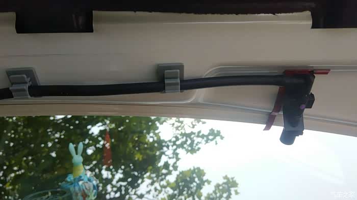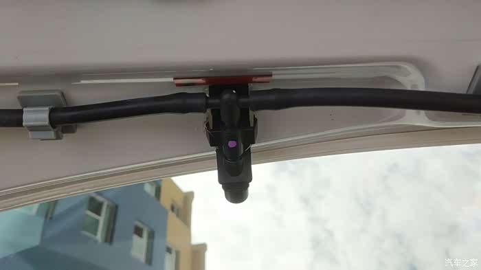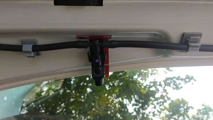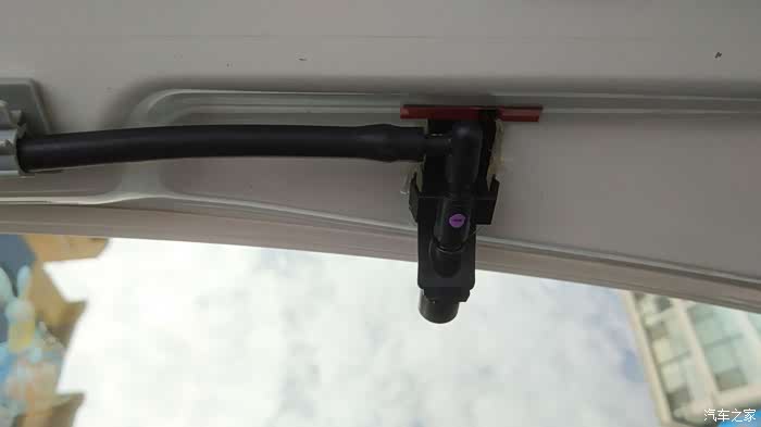 原车喷水嘴防止下雨渗水,我取了一段水管插上,然后对折塞到原车喷水嘴的空隙里,正好达到密封效果