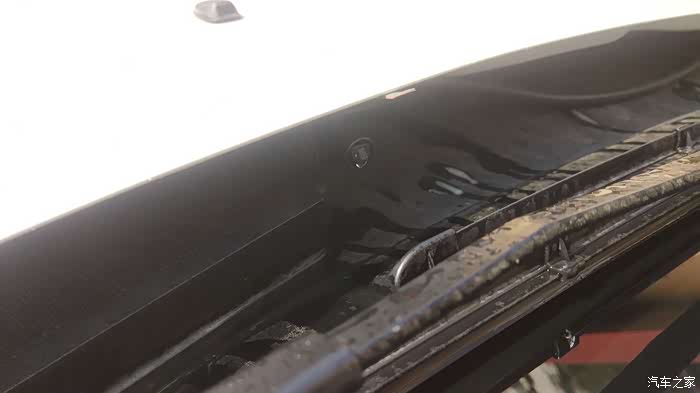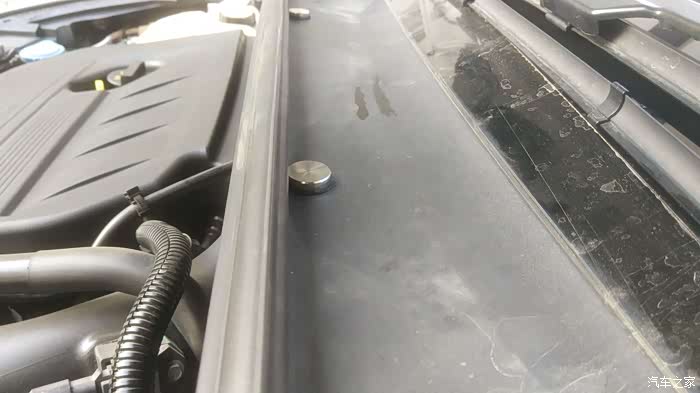 顺便说一下,集雨板上的四个胶扣原厂有打胶,所以初期可能不会渗水,时间长了一老化就会渗,其实根源一是原厂胶扣密封垫圈是泡棉的,本身密封效果就挺差;二是胶扣的压紧力不够。这么改造下这两个问题都解决了,不过也只是解决了部分渗水问题,集雨板和玻璃缝隙也会渗,只是我的基本没有所以没管,另外集雨板的排水口设计也不合理,下面就是三元催化,这个只能DIY个接水盘解决