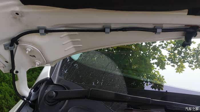 喷水嘴改内置原车水管会长出来一些,松开机盖铰链处以及叶子板处的卡扣调整下水管长度,此处预留大约这些,其他的余到机舱里即可