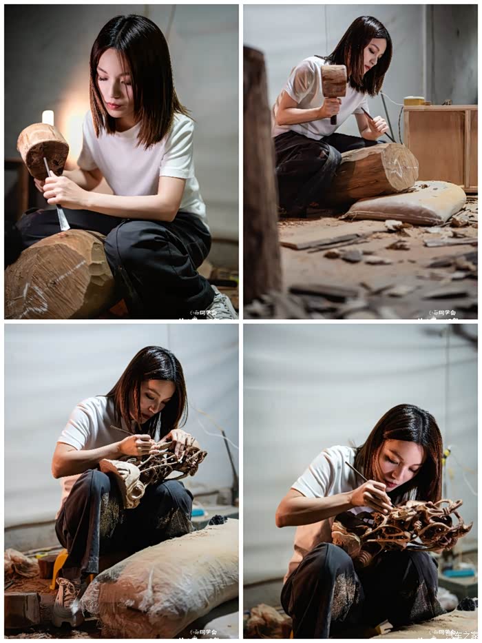 早前没注意,没想到陈嘉老师是一个这么年轻貌美的女孩,虽然年轻,却由于家学渊源的关系,已在木雕艺术这一行,有了十多年的功底,看她工作时认真的态度,即可知她十多年来所下的功夫之深。