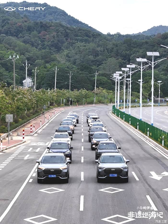车队排成两条长龙,虎7、虎8、虎9,好壮观!