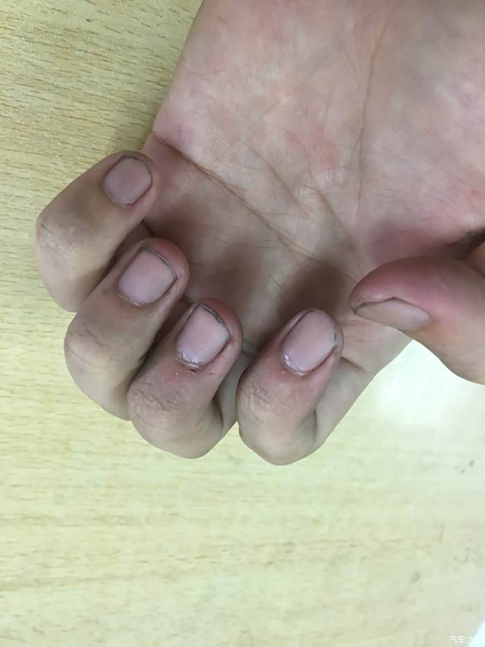 没有戴手套修车,洗多遍都洗不干净的手。