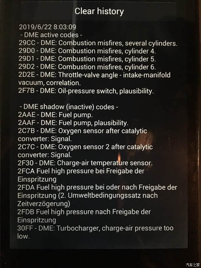 时间来到了第二天早上,我6点起床,吃了早餐,七点就拿着安卓手机连接obd读故障码。发现是4 5 6气缸失火。