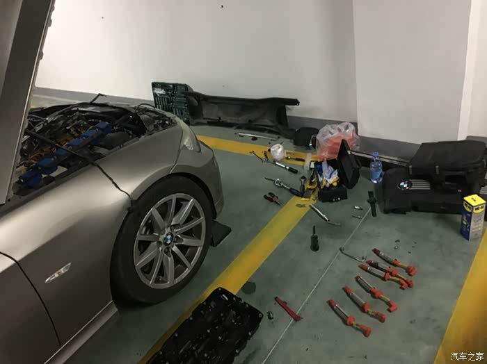 网上说,DIY更换N54的气门室盖垫大概需要花四小时,于是,某天下午四点,我把工具拿到地下车库,开始拆车。