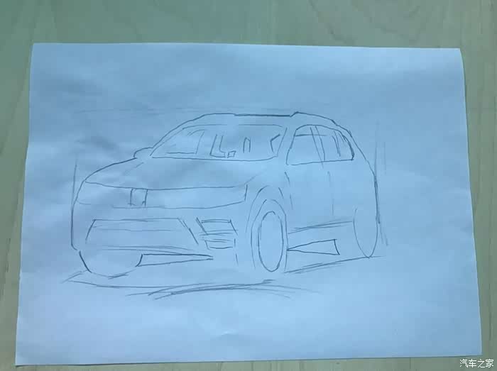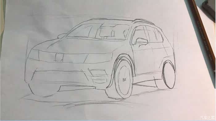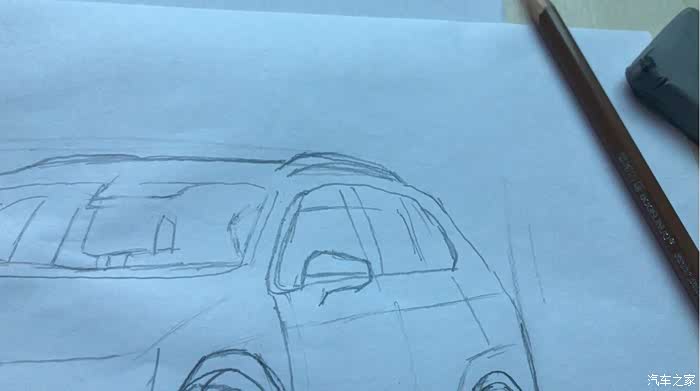 先是构图,我是习惯是,先把比例算好,由于是车子,最开始先上下左右画出一个矩形。然后勾画车的轮廓和一些主要的线条。