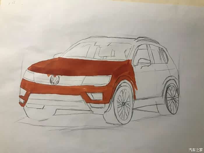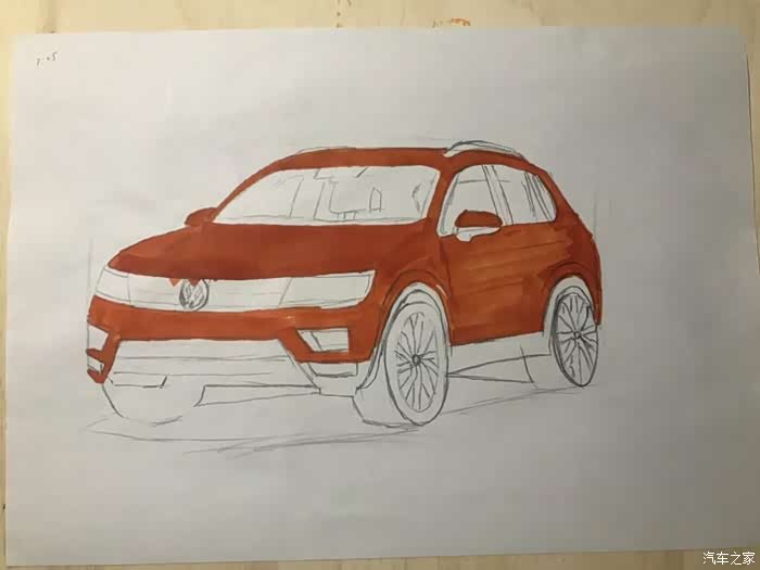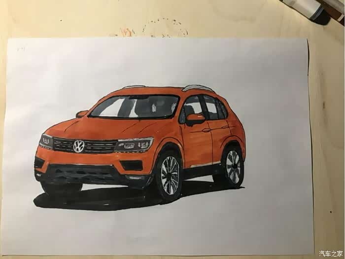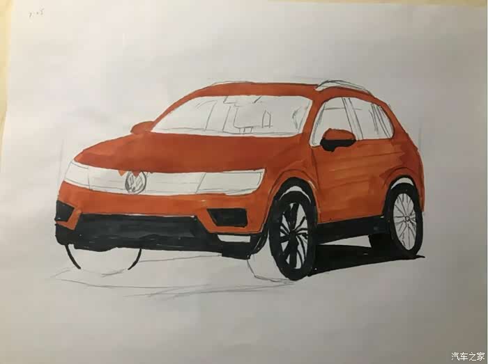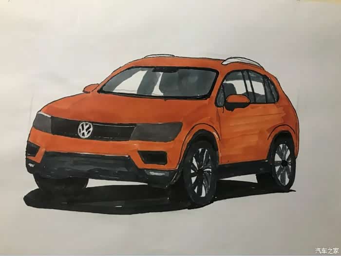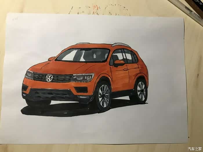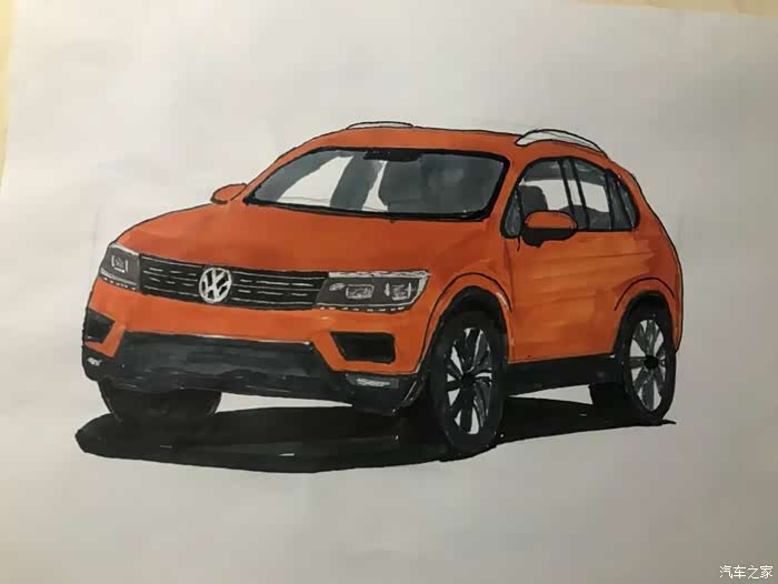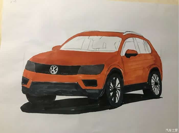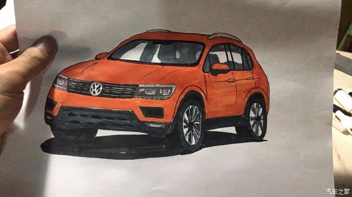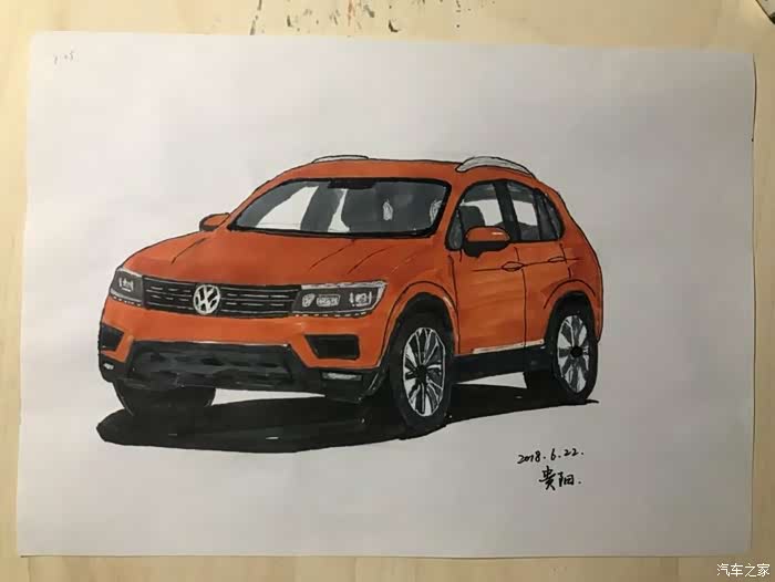 今天发的帖子,全新途观L,橙色的,是昨天晚上学习的,可能晚上光线问题,画好了,才发现色差有点大,同时还有很多地方画得不好,比如轮毂,比如格栅,比如,,,,总之就是和原图差得太大,所以就不发原图来对比丢人了。