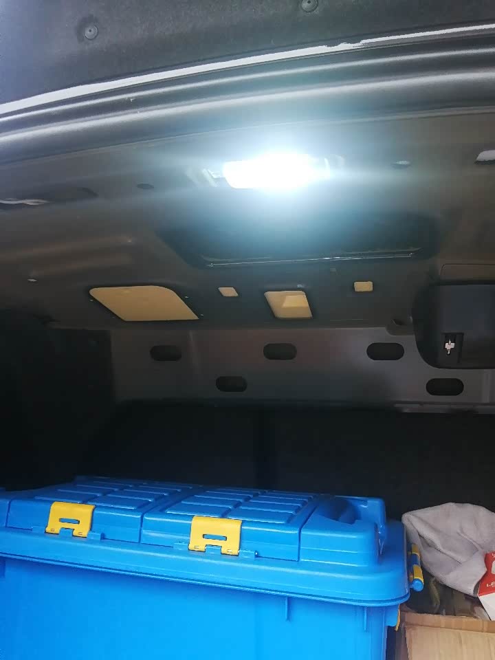 后备箱照明灯,之前是在侧边,这设计很不合理,照亮范围小,我改装到顶部了