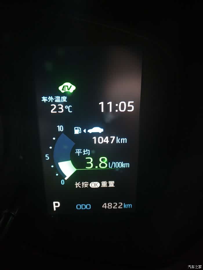 提车第一天回家照的,加满油大概270、280元吧,续航1130+公里,我这个是停车后又原地怠速开空调看说明书造成的
