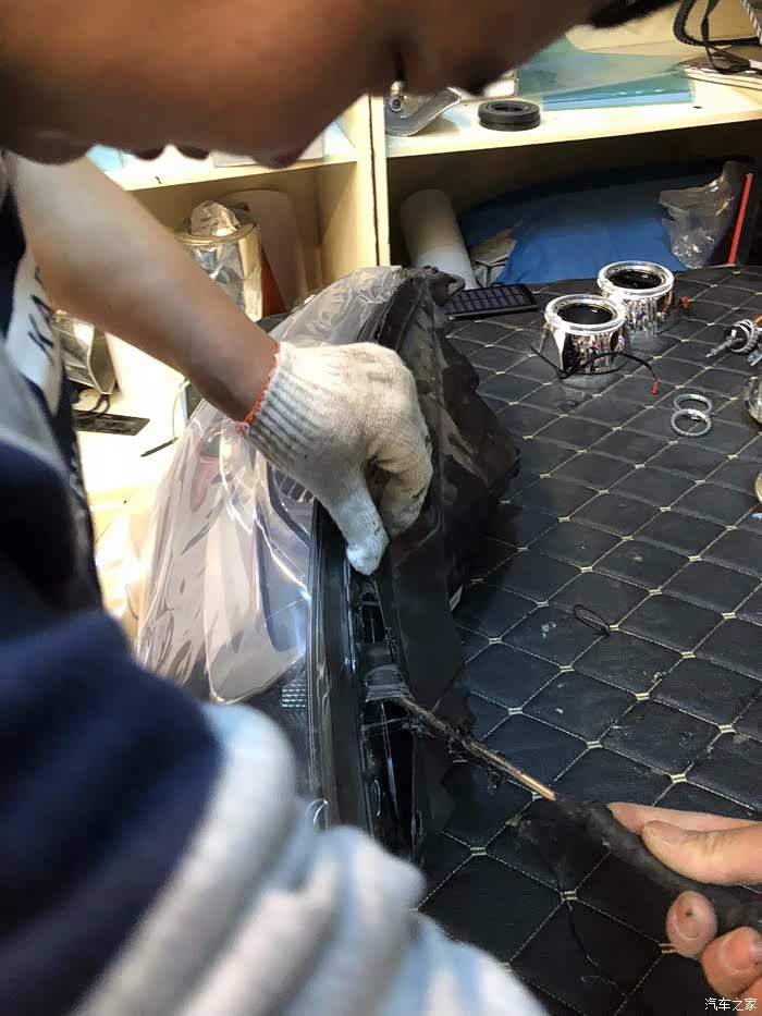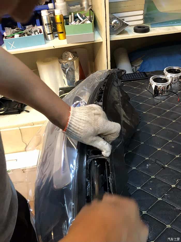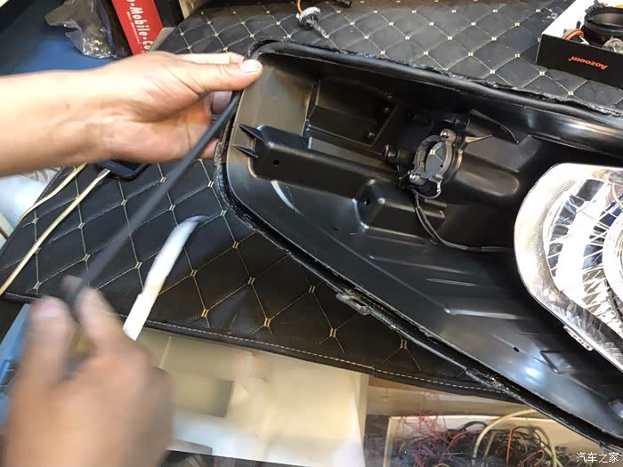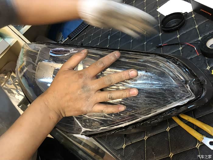 安装好透镜,开始要上胶条,蛇胶!