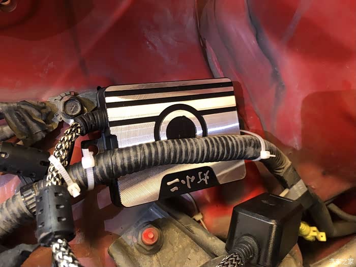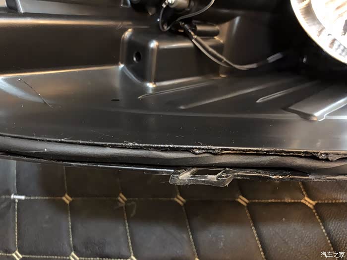 我引擎盖内没有螺纹口可以安装支架,只能在这用3M双面胶胶在车身上