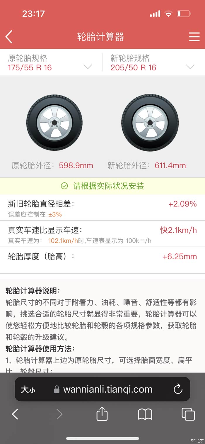 更换205 50 R16的轮胎,误差也在3%内