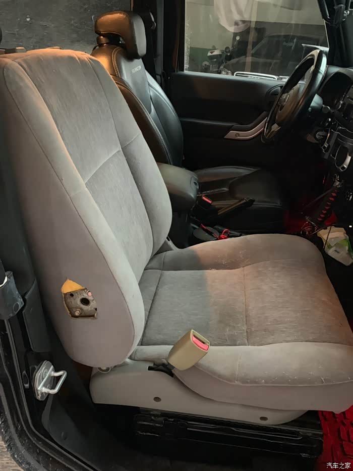 放上座椅大致看看装上有没什么问题 因为这个比JK座椅宽大不少…为什么安全带在门口?不好意思 拿错拿了主驾装副驾上了 哈哈