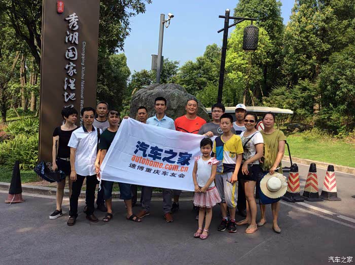 终于到达第一站目的地--璧山秀湖,大家停好车,来张集体大旗合影