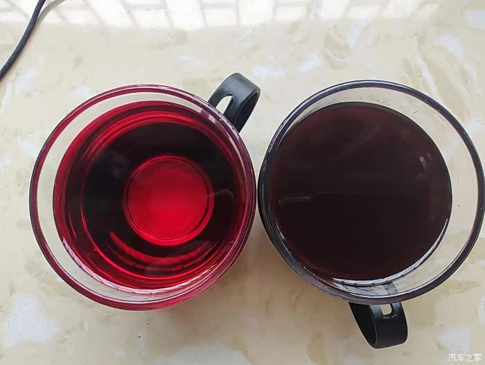 左边新油,右边是第一次加新油跑了50公里后放出的混合油