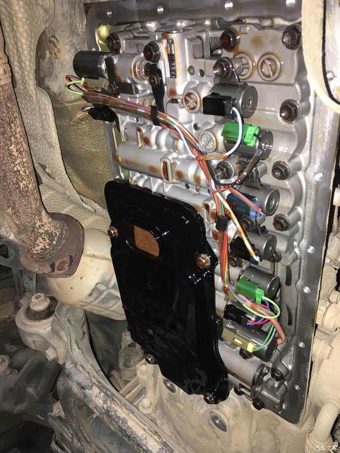 第一次,拆油底壳,放出大约3.2升。清洗油底壳,不更换垫子,更换爱信品牌滤芯。