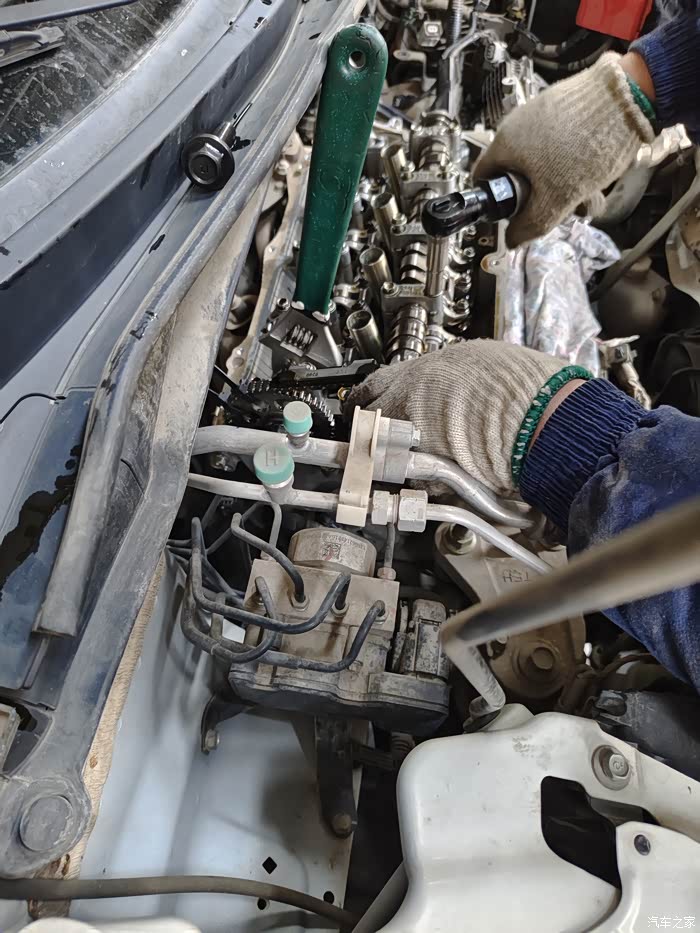 师傅在拧螺丝,气门室盖。开车12年了。这个位置就没拆开看过。今天第一次啊。