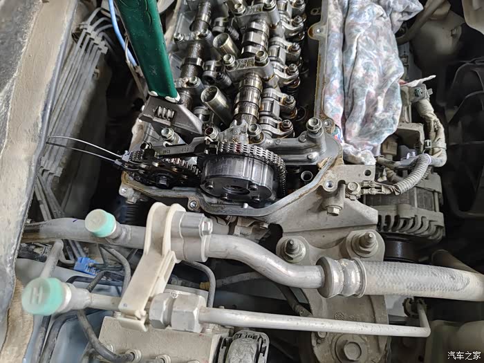 绑带定位,记号笔做记号。为啥要这么做呢?因为正时链条不能偏。轻者打不着火,重则顶气门,大修发动机。。。。。。想想都害怕。哈哈哈哈