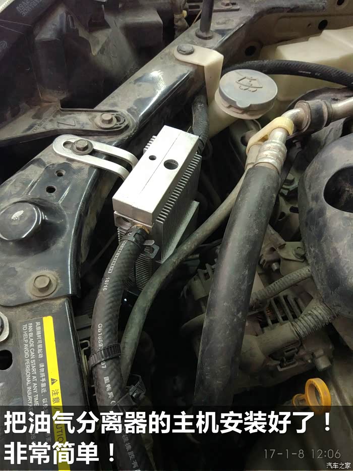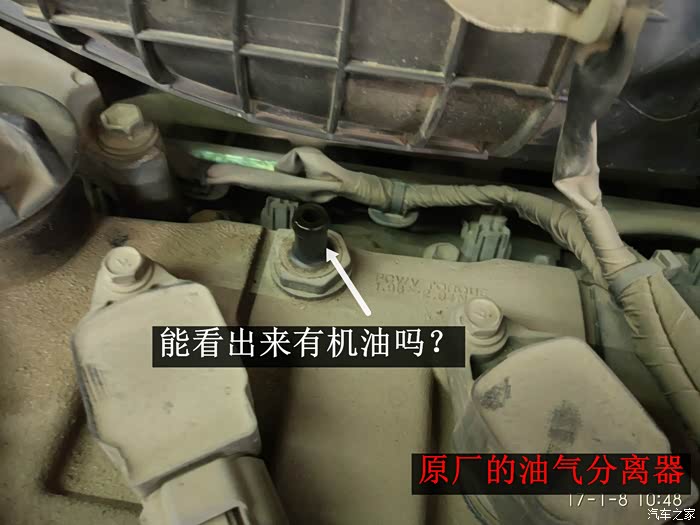 大家从照片上的时间可以看到,安装时间是1-8,到现在发帖已经一周不到了。目前车辆行驶一切正常。油耗没有明显的下降。车辆运转一如既往的平稳。等我在跑10000km后,我会收集油气分离器分离出来的机油量,并重新打开节气门,看看节气门的积碳情况。如果可能,希望能用内窥镜看下燃烧室的积碳改善情况(之前做过吊瓶清洗,并坚持使用G17添加剂8000km左右了)。安装后,添加剂不再使用(也用完了哈)。最后情况到时候再跟各位车友分享了。