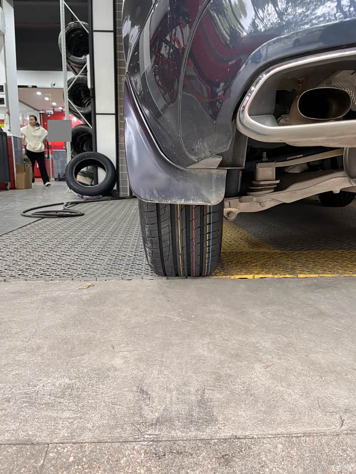 选了一个周日下午,按照预约的时间提前5分钟开车到店。接待人员核对了预约信息后,马上有一个工人师傅与我对接,将汽车开到工位开始干活。于是拿出手机来开始拍摄。新轮胎就摆在地上,看着赞新的纹路,真是舒服,先来一些细节。