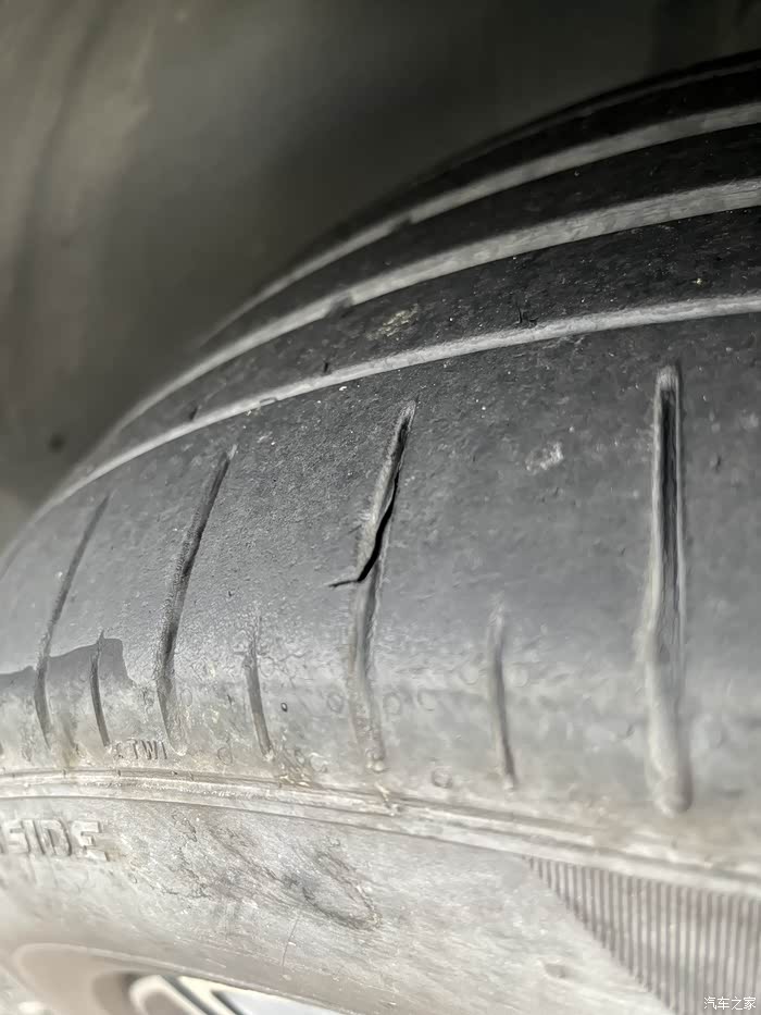 今年春节返乡途中,在服务区检查车辆时发现右前轮胎面有一处破损,于是仔细检查了四个轮胎,发现两个前轮磨损已接近1.6mm安全线(原厂新胎沟深8mm),并且四个轮胎的胎面小花纹基本都磨平了,橡胶按压硬度明显增加,我感觉轮胎老化的比较厉害。为了安全起见,当时有了更换轮胎的想法。