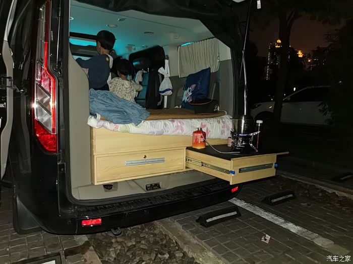 目前发现很多不足,车子就这么大如果两个人可以过得非常舒适。三口之家也可以满足,四口之家就还需要改进,分成前后双床才行。需要改更多的储物袋