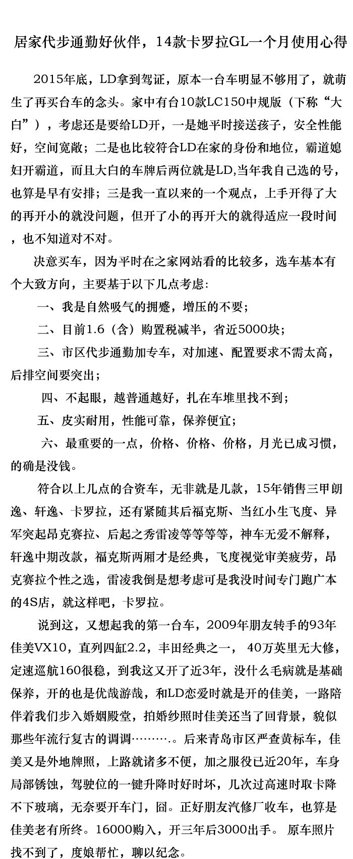 居家代步通勤好伙伴,14款卡罗拉GL一个月使用心得