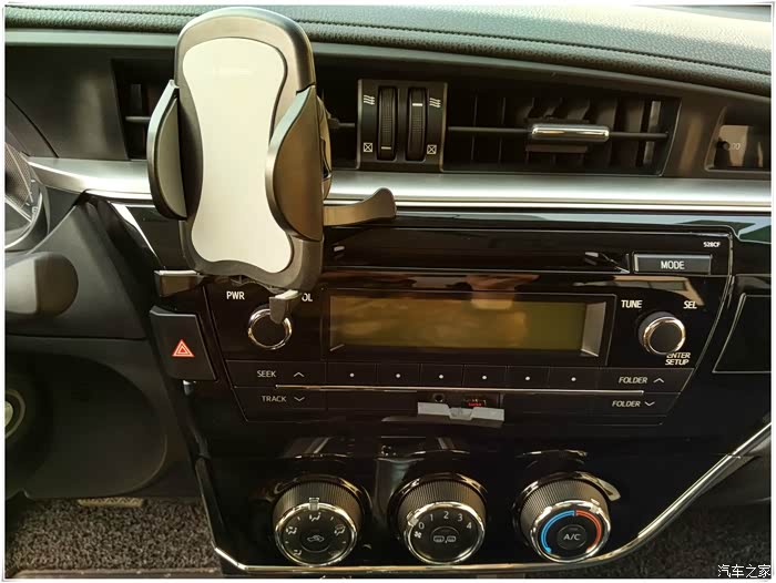 钢琴漆的中控,美观,但难以打理,换成磨砂的额就更好了,出风口的手机支架