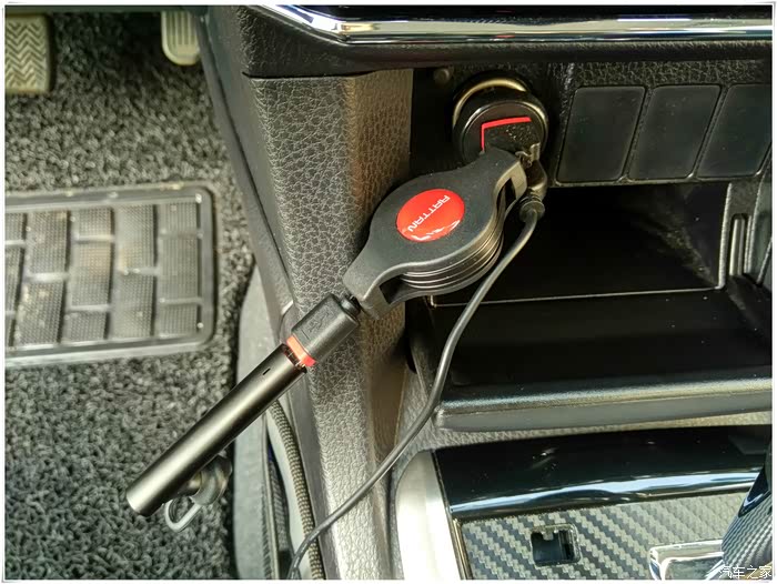从点烟器引出,从脚垫下走线