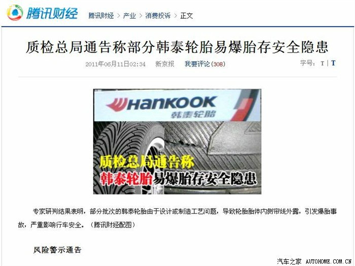 棒子为了挣钱,无所不用其极,锦湖不必说了,说说韩泰。韩泰和锦湖一个鸟样,爆胎的也不少。我在07年去过长春一家车桥厂出差,隔壁就是韩泰,发现一大堆人在车间门口,一打听原来韩泰严格执行长春最低工资,工人正在罢工,要求涨工资呢,这样的企业产品质量可想而知。