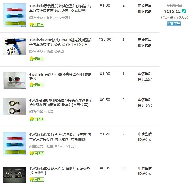 9月19日购买冷压端子、防水插头、压线钳等等,115.12元