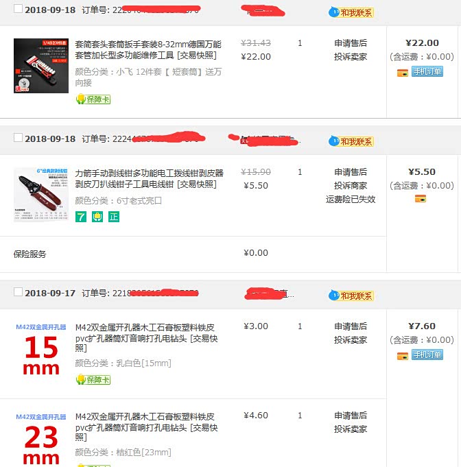 购买开孔器,15mm的一个,23mm一个(实践证明,晚上下单买错了,应该买28-29mm的),7.6元