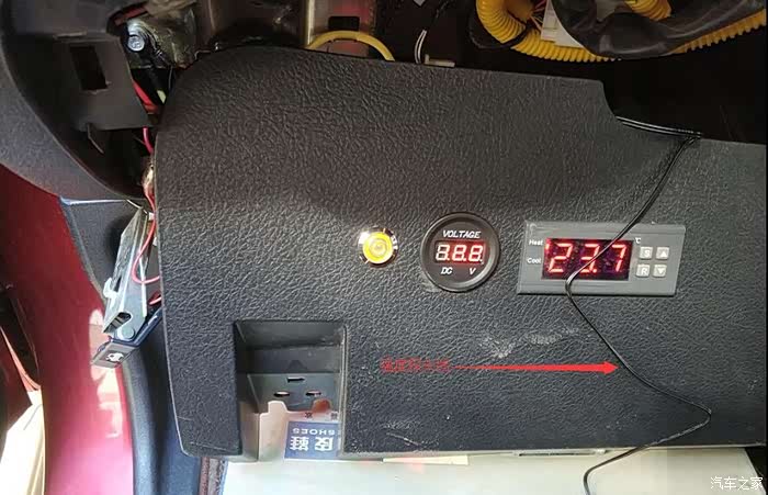 电压表的作用是监测电瓶电量,总不能用加热把电瓶搞报废,我没有计划安装副电瓶,所以在其他人方案上增加了一个电压表