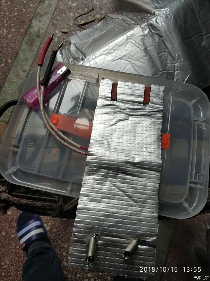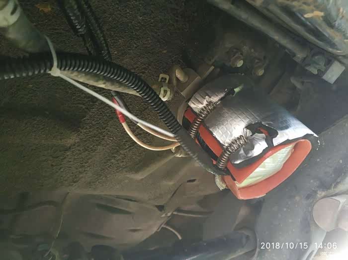 10月15日晚上再次测试,发现保温棉加热后脱落,又钻车底进去用扎丝绕了两圈。
